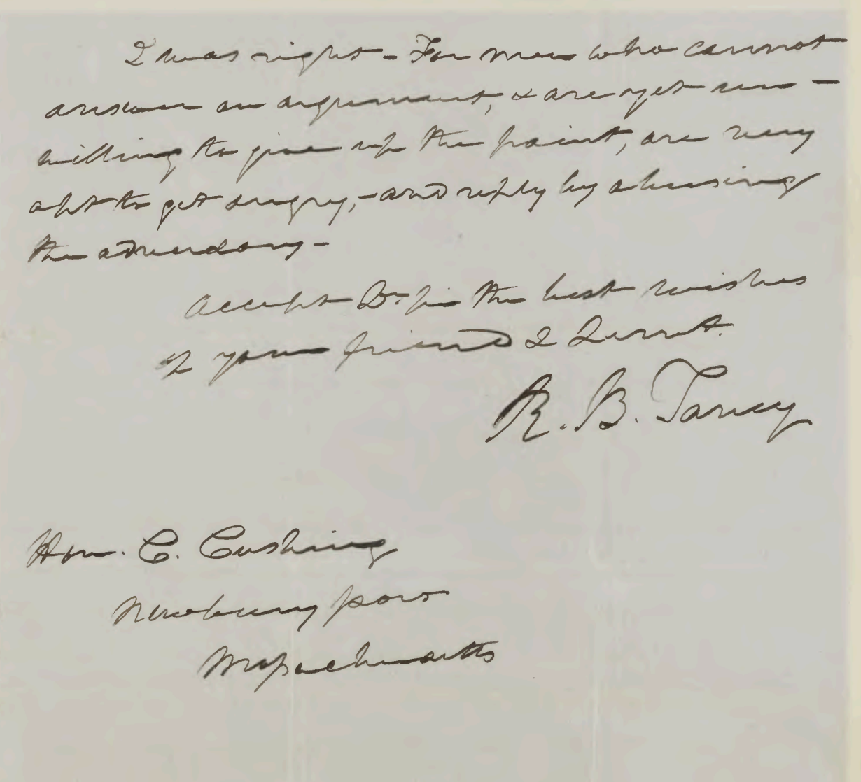 (A portion of the letter from Justice Taney to Cushing. Courtesy Library of Congress.)