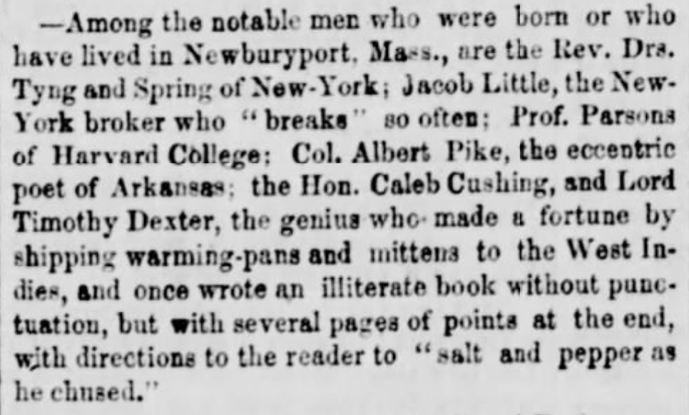 Pike’s connection to Caleb Cushing however is not up for debate. The finding aid for the Cushing Papers at the Library of Congress lists Albert Pike among Cushing's correspondents, alongside Jefferson Davis, Rufus Choate, Franklin Pierce, and Daniel Webster. It appears that these two men from the same Massachusetts town were in communication each other across the decades that preceded and followed the Civil War.